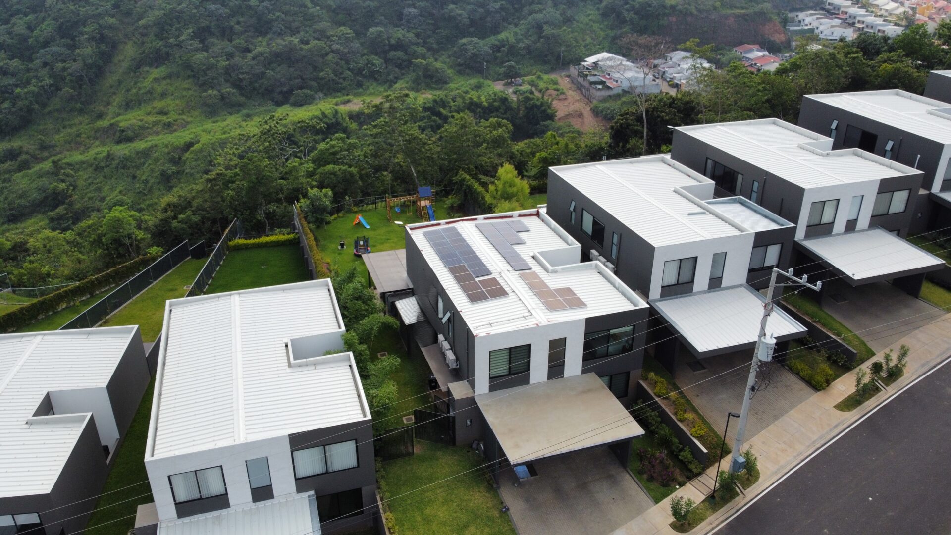 Durante 2025 se desarrollaron proyectos residenciales en La Libertad y San Salvador, enfocados en reducir el consumo de energía de la red convencional, mejorar la eficiencia energética de las viviendas y disminuir las emisiones de CO₂ mediante el uso de energía solar. Se instalaron 52 paneles fotovoltaicos de 450 Wp, 575 Wp y 610 Wp, junto con inversores Huawei de 3 kW a 8 kW, garantizando una operación eficiente, segura y confiable para el uso residencial.